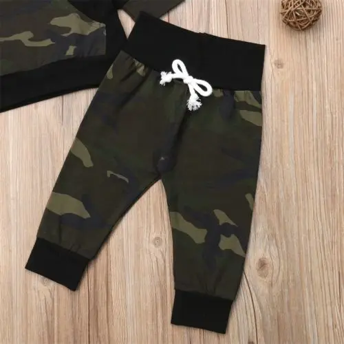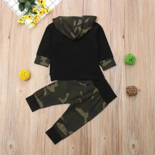 Limited Price for Babies 2Pcs Hooded Camo Clothes Sets Newborn Baby Kids Girl Boys Hoodie Tops Pants Spring Autumn Ou
